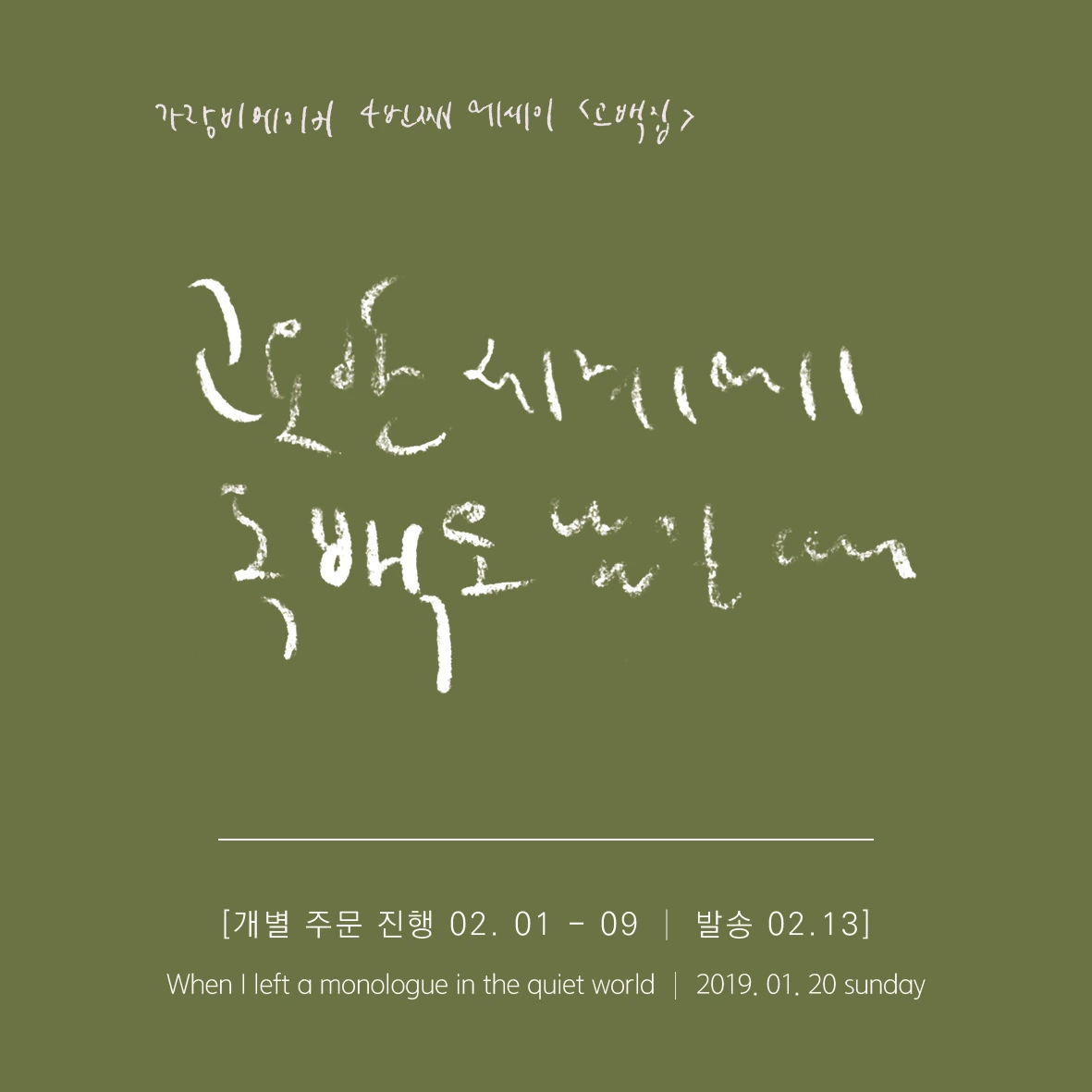 안녕하세요. 가랑비메이커입니다. 올해 첫 신간인 고백집 <고요한 세계에 독백을 남길 때>가 지난 주로 (텀블벅) 후원자분들께 모두 전해졌습니다. 오래 기다려주시고 응원해주신 모든 분들께 감사를 드립니다.