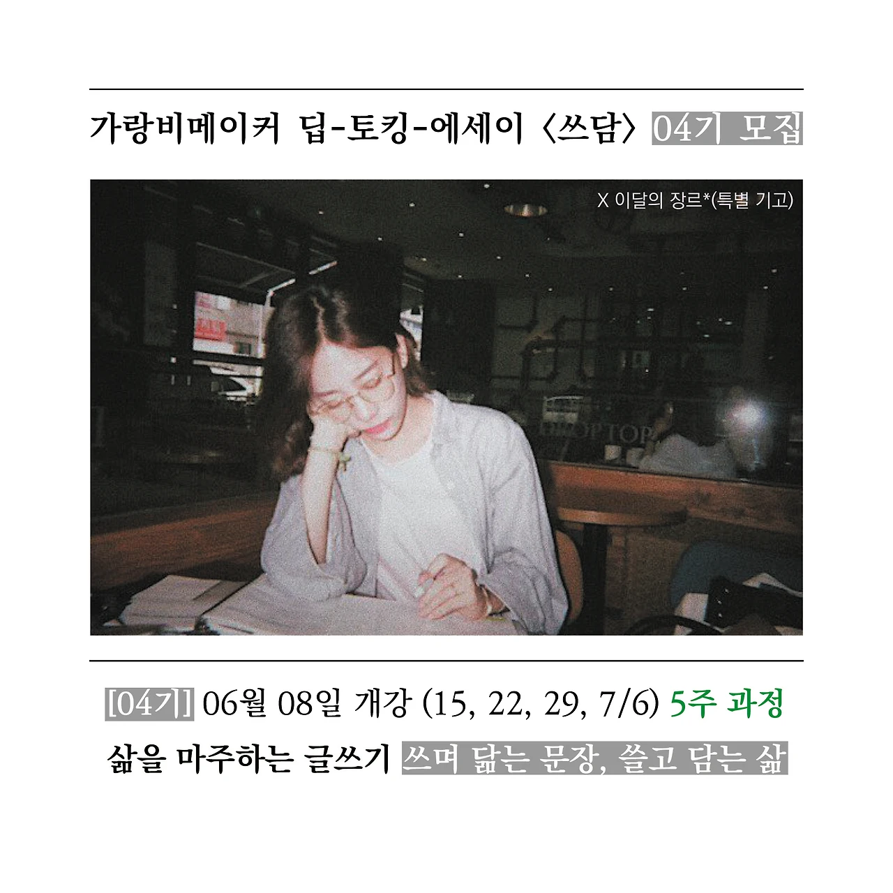 *현재, 딥토킹에세이클래스 <쓰담> 4기*반 모집 중입니다. (위의 링크 참고)