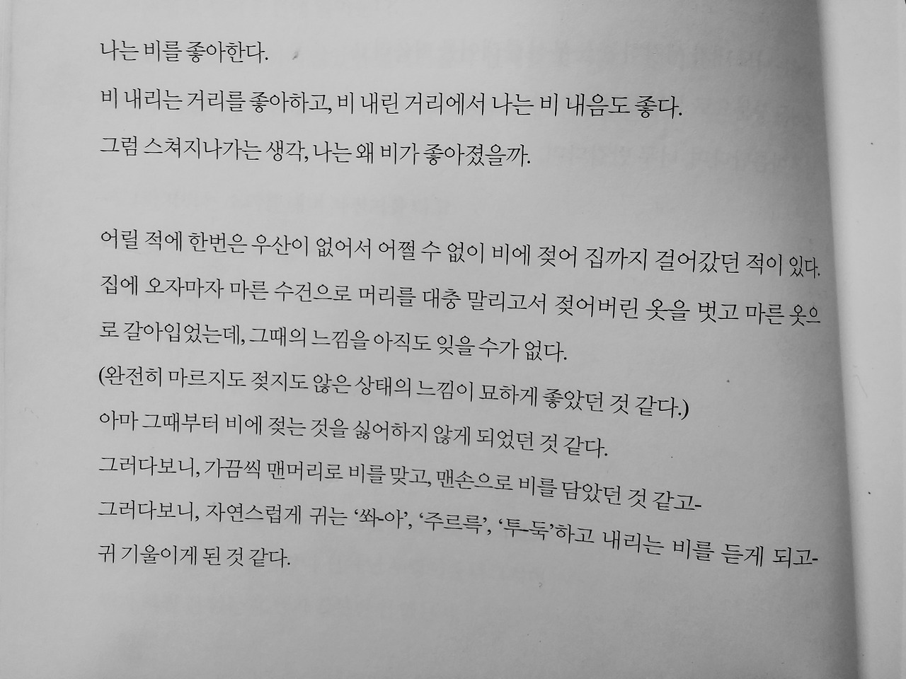 비를 왜 좋아했는지, 는 여기 이 글을 보아도 잘 알 수가 없다. 아무래도 표현력이 부족했던 탓도 있으나 그 이유가 지금도 정확하지 않기 때문일 것이다.