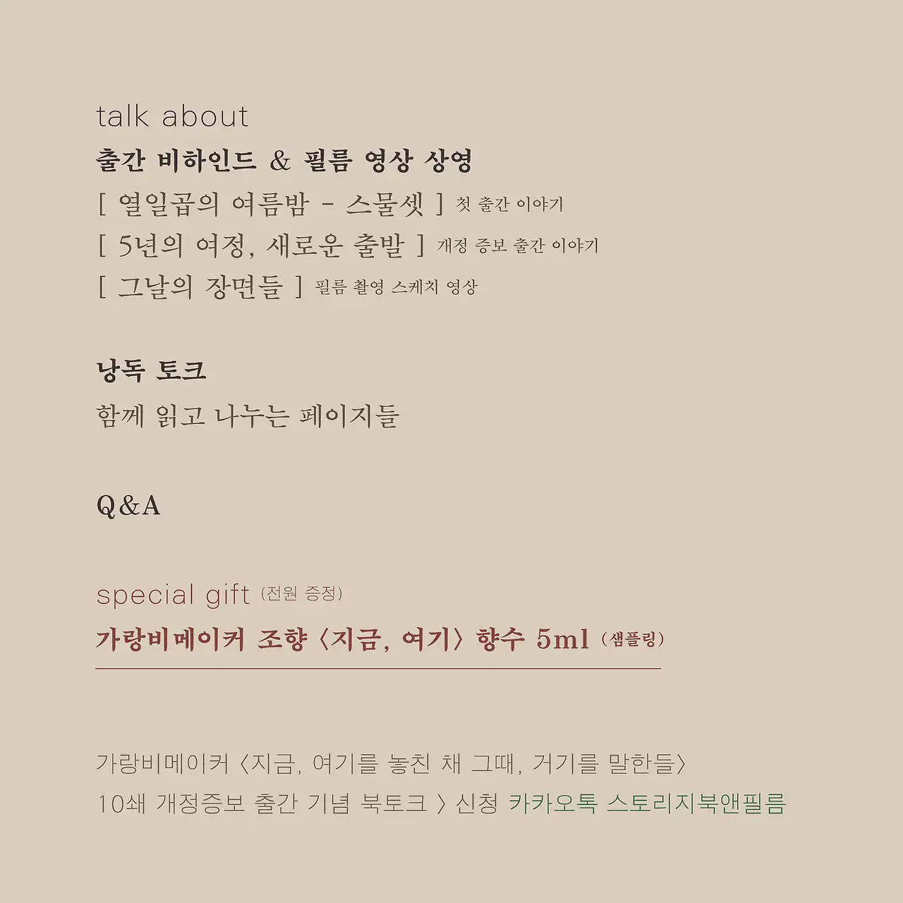 가랑비메이커 단상집 <지금, 여기를 놓친 채 그때, 거기를 말한들> 10쇄 개정증보 출간 북토크!