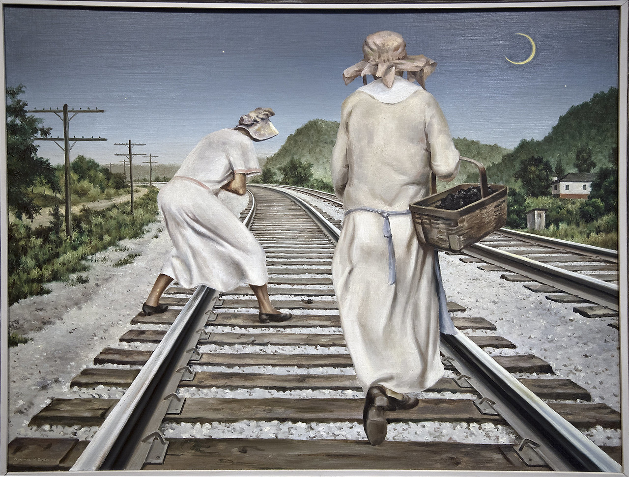 카터는 오하이오 주 포츠머스에서 태어나고 자랐다. 그는 고향에 대한 그의 강한 애착을 그의 작업의 대부뷴에 할애했다. 'Jane Read'와 'Dora Hunt'는 기차가 지나간 후 두 시골 여성이 철로를 걸으며 석탄 열차가 떨어트린 석탄 조각을 줍는 그림이다. 어느 세계에나 여성의 가사 노동은 새벽의 초승달처럼 여리고 힘겹고 새벽빛처럼 처연하다. 달의 기울기처럼 인생도 부드럽지만 한편에 고단함이 함께 한다. 신새벽.