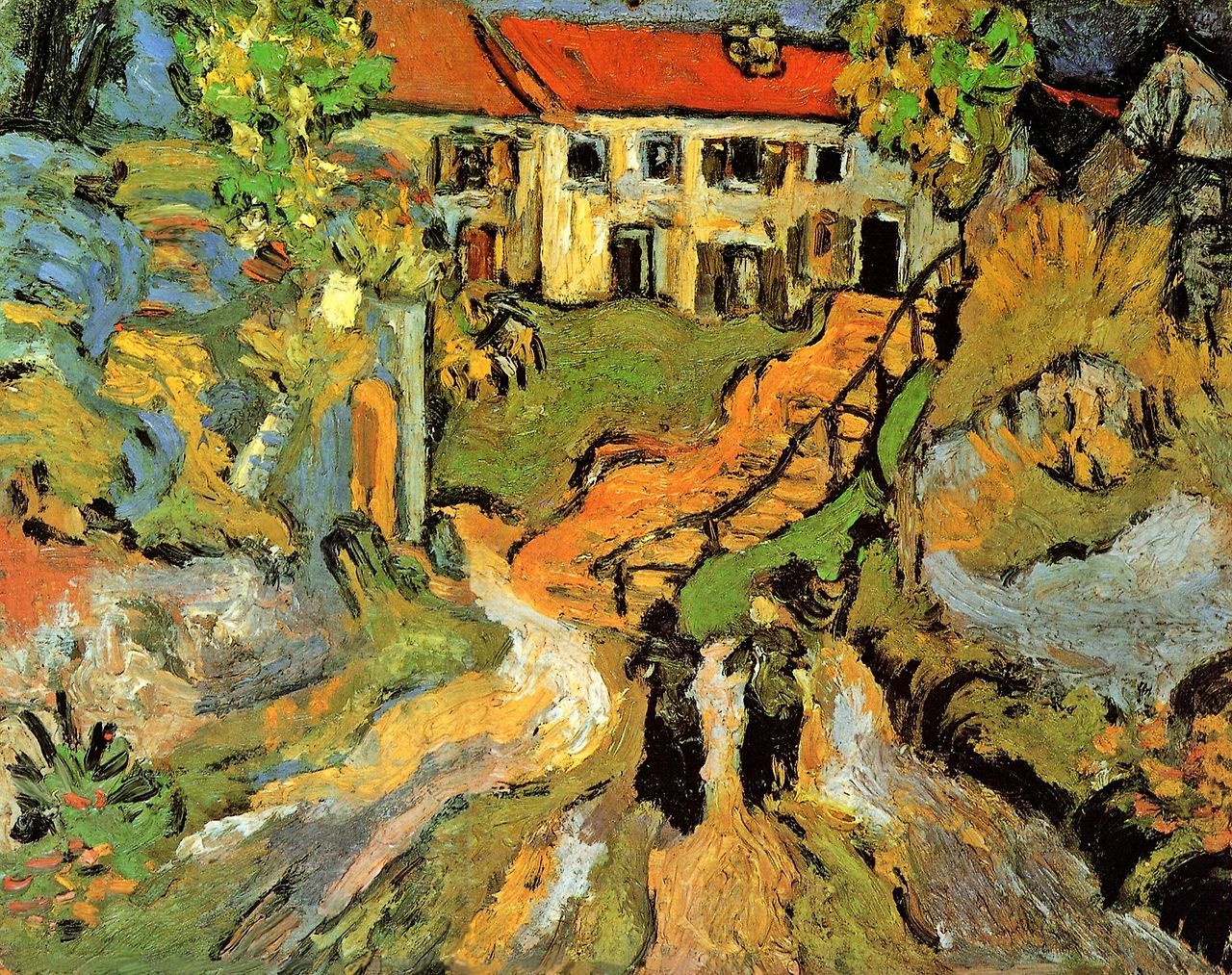 1890 Van Gogh Village Street and Steps in Auvers with Two Figures