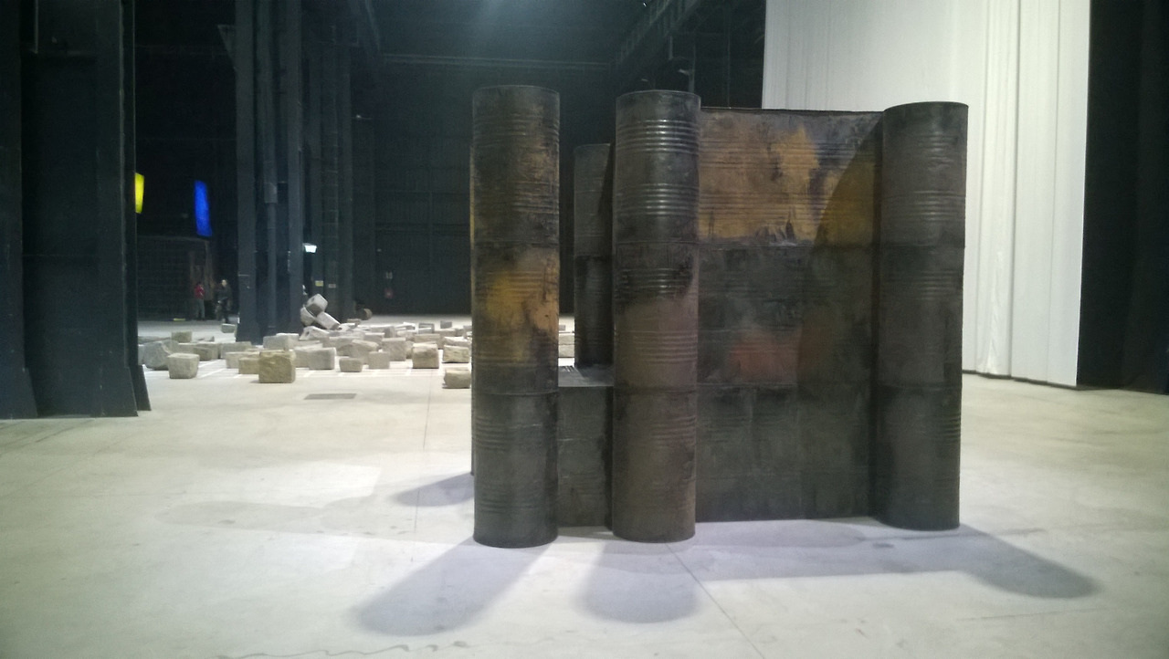 작품은 인도의 예술가 실라 고다의 '암실' 연작이다. 공사판의 폐드럼통을 옮겨다 접붙이고 이미터 높이로 키를 세우고 접근 불가능의 고립된 성을 쌓아 둔 것처럼 만들었다. 두 번째 사진의 구조물의 정면 아래 검은 부분은 드럼통의 구조물 속으로 들어가는 입구이다. 어떨까? 허러를 굽혀야 한다. 검은 입구에 녹슬고 부식된 드럼통의 사면은 감금과 폐쇄의 고립된 성을 연상시킨다. 거기 들면, 거기서 그만 거기에 굴복당하고 녹슬고 부식되는 삶을 살게 될 수도 있다. 그것이 우리 시대의 삶의 방식이 아닌가. 어딘가에 들면. 거기에서 녹슬고 부식되는 기계적 삶의 형태에서 벗어날 수 없지 않은가. 그러나