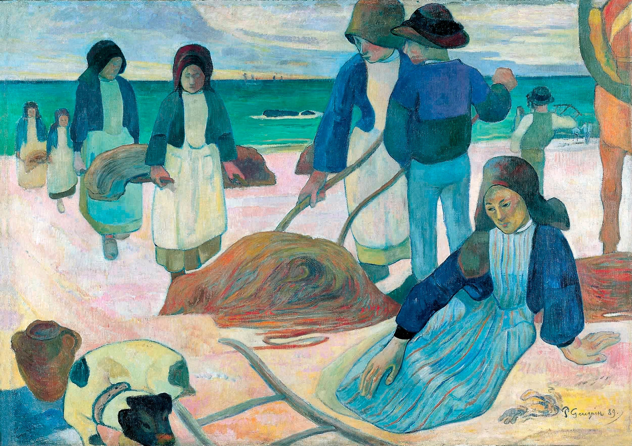 브르타뉴에서 고갱은 자연의 리듬과 관련된 단순하고 진정한 원시생활의 기원을 찾고 있었다. 그는 묘사의 형태를 단순화했고 인상파의 분석적 개념에서 벗어나 자신의 작품에 힘과 명료성을 부여하며 자신만의 화풍을 완성했다. Kelp Gatherers의 특징 인 이차원적인 장식 효과는 고갱을 이해하는 좋은 예의 작품이다.