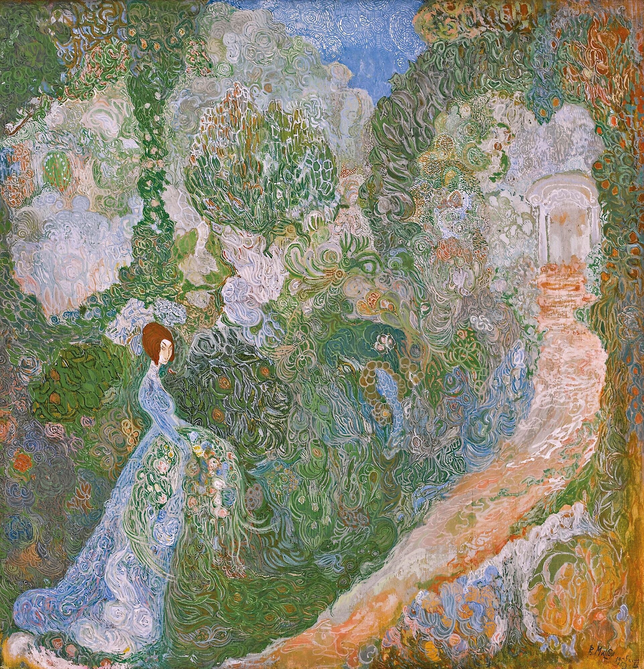 화려한 드레스를 입은 여인이 서 있는 공간은, 몽상과 기억, 꿈과 현실이 용암처럼 들끓으면서, 형용할 수 없는 정원이라는 상징적 공간을 통해 드러낸다. 상징화된 자연(정원)은 시적이면서 몽상적이고, 들끓는 욕구의 상징 공간에서 언어적 초월성 띤다. 한 계절의 정원에서 한 세기 인간의 꿈이 피어난다.