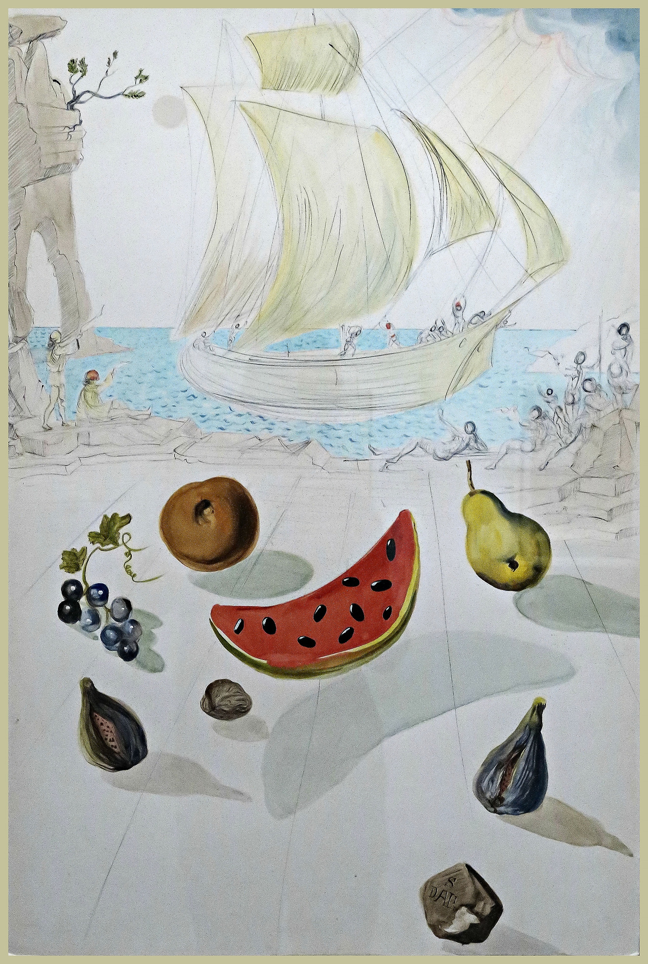 Nature morte, fruits et bateaux" 1956 Salvador Dali