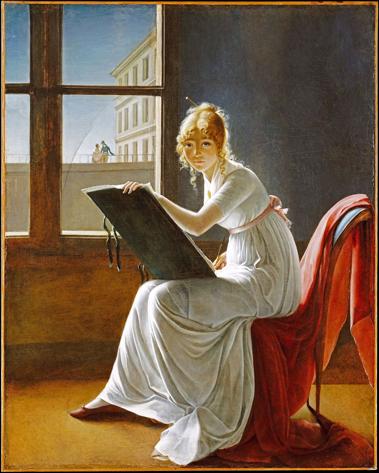 마리 드니즈 빌레르는 (1774-1821) 프랑스 여성 화가이다. 그녀는 초상화를 전문으로 그렸다. 이 작품이 메트로폴리탄에 전시되었을 당시 화가의 이름을 자크 루이스 다비드의 작품으로 소개되었다. 이후 1951 큐레이터 샤를 스털링 Charles Stirling 은 이 작품을 “잘 알려지지 않은 어떤 여성”의 작품이라는 했다. 이후에도 콩스탕스 마리 샤르팡티에 Constance marie charpentier의 작품으로 여겨지기도 했다. 수십 년이 지난 후 1995년 에서야 마가렛 오펜하임에 의해 빌레르의 작품으로 판명되었다.
