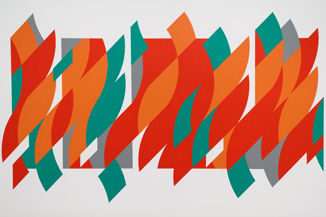 Cascando (2015), Acrylic on polyester A7R03736 Bridget Riley exhibition, Hayward Gallery, London