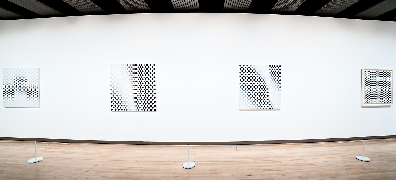Where (1964), Loss (1964), Pause (1964), Fission (1963) A7R03741 Bridget Riley exhibition, Hayward Gallery, London