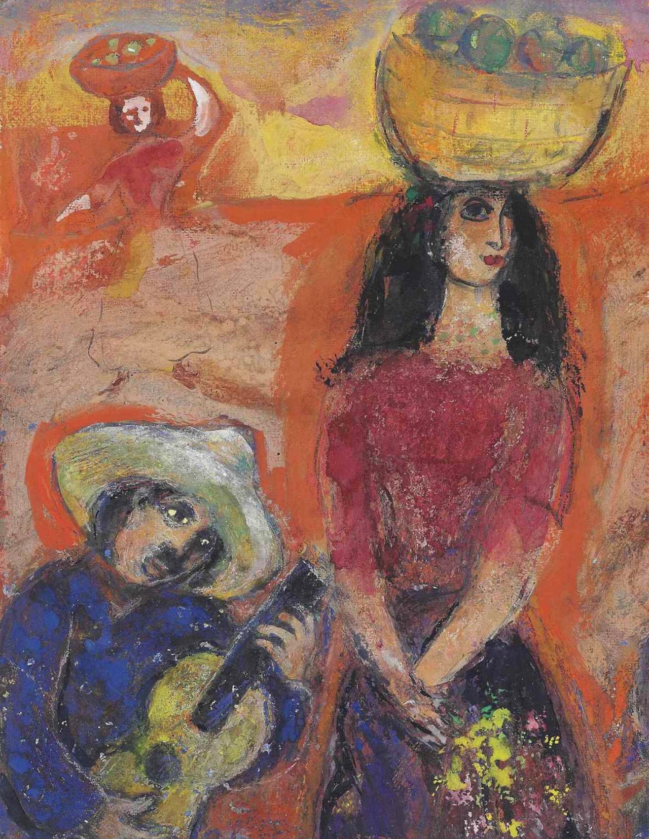 아내를 잃기 전 샤갈의 그림은 따뜻하고 긍정적이며 활기차고 아름다운 색채로 가득했다. 사랑을 잃고 나서 샤갈의 그림은 검푸른 질감으로 점철된 우울한 화풍이 전부였다. 사랑은 우울을 짊어진 활기이다.