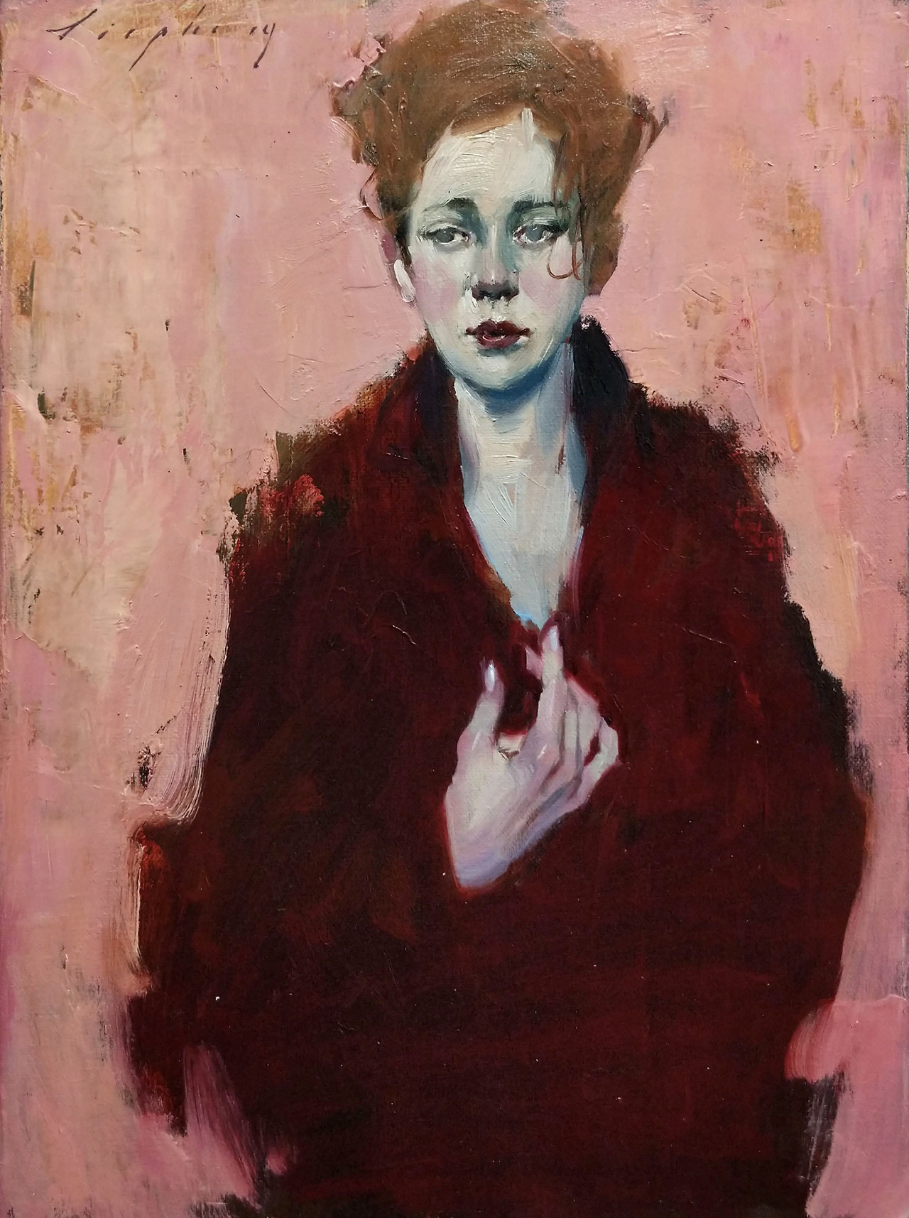 Lady in Red (2019) (olio su tela 40,6 x 30,5 cm)