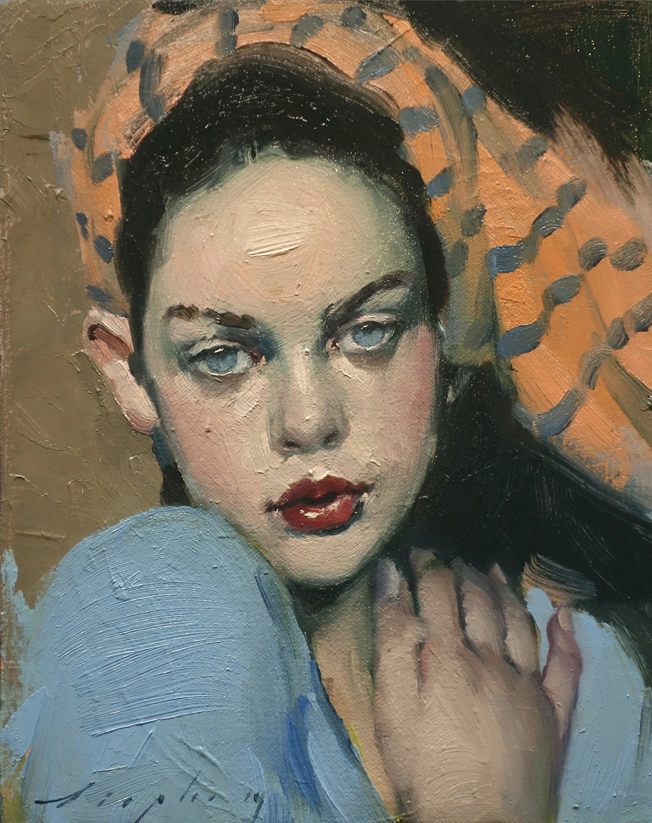 Orange Bandana (2019) (olio su tela 25,4 x 20,3 cm)