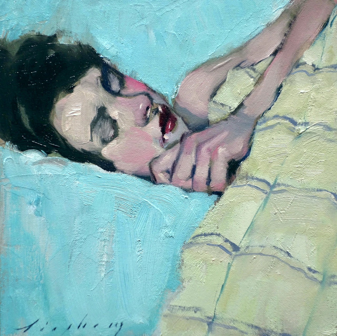 Napping (2019) (olio su tela 20,3 x 20,3 cm)