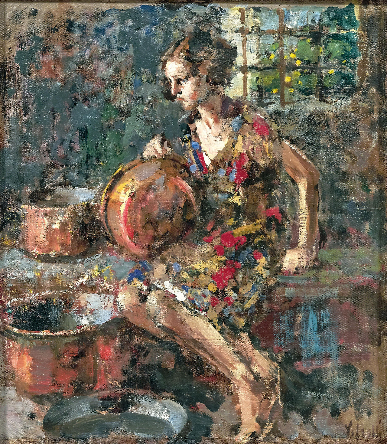A girl with copper pots (non datato) (62 x 54 cm)