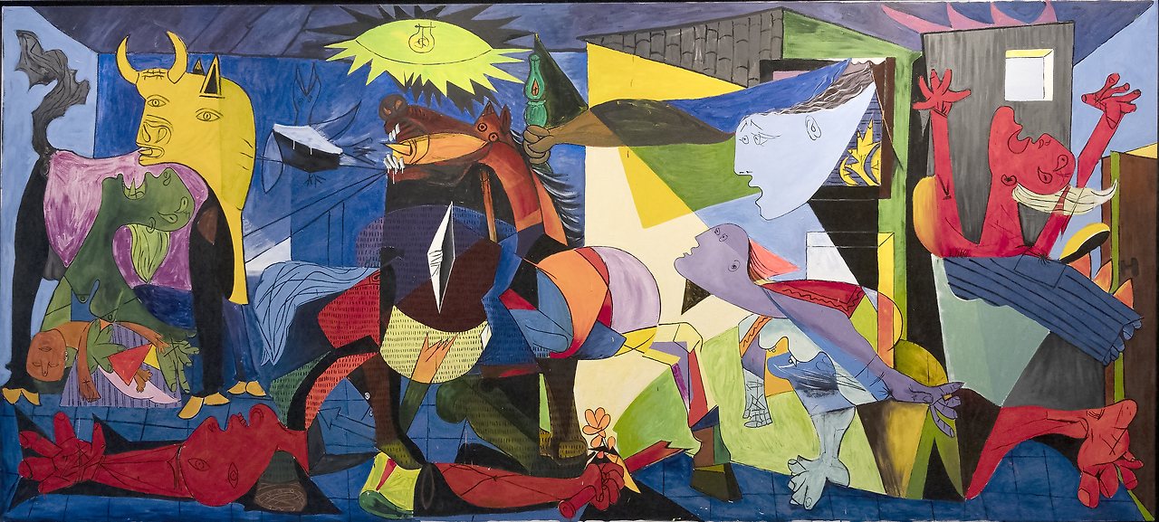 이 그림에서 소피 마티스는 파블로 피카소(Guernica, 1937)의 구성과 그녀의 증조부인 앙리 마티스의 색상을 융합하여 전쟁 트라우마 대한 그녀만의 독특한 관점을 제시한다. 그녀의 게르니카의 긴장과 불안은 그녀가 목격한 2001년 9월 11일 세계 무역 센터의 파괴와 중동 전쟁에서 비롯되었다.