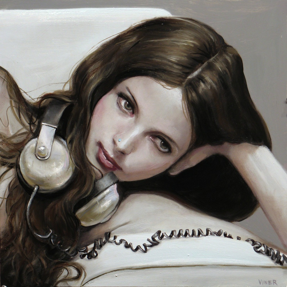 Jonathan Viner는 1976년 뉴욕에서 태어났다. 그의 작품에는 미국의 팝 문화, 심리학을 포함한 광범위한 문화적 영양을 엿볼 수 있다. 눈에 띄는 긴장감은 바이너의 미묘한 색조와 풍부한 가치의 부여에 있다. 방금 음악을 듣고 헤드폰을 목에 두른 여인의 모습을 통해 바이너는 사색, 자기성찰, 대화를 위한 공간을 만들어 놓았다. 감상자는 인물에게 질문과 심리상태를 엿보게 되고, 경험에 의한 자기를 바라보게 된다.