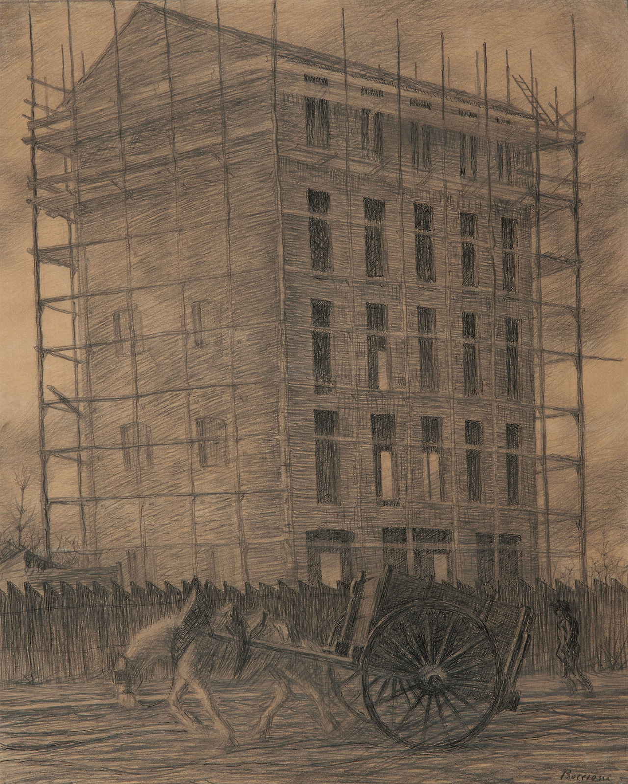 Boccioni Umberto : Casa in costruzione , (1907:10) / 49,2 x 40 cm