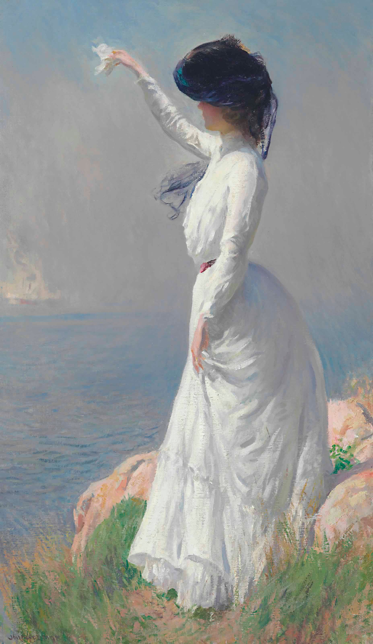 인상파 화가들의 대기 효과를 적절히 잘 활용하여 여인의 드레스 뒷부분은 그늘이 드리워져 푸른색이 어른대고