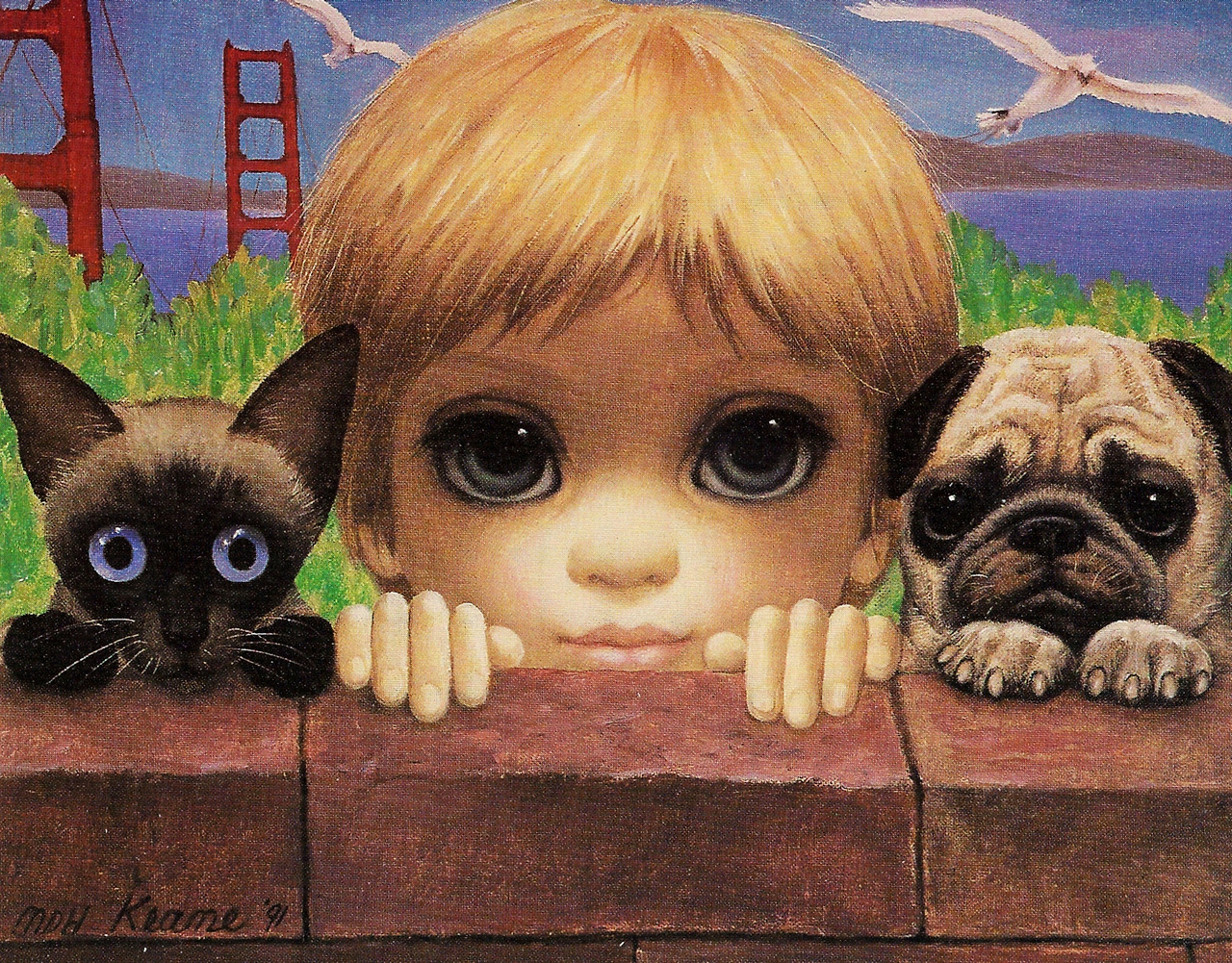 이 눈들은 무엇을 보고 있을까요. 우리를 반기는 눈일까요. 담너머에서 이곳을 내다보며 우리를 경계하는 걸까요. 개와 고양이와 왕방울 눈의 소녀가 가지고 있는 순수의 세계를 우리가 성큼 다가가서 부셔야 할까요. 어쩌면 담너머에서 저들의 세계로 우리를 부르는 것인지도 모르겠습니다. 이 헷갈립니다. 이들은 왜 커다란 눈은 뜨고 머리만 쏘옥 내민 체 대롱대롱 매달린 듯이 우릴 향해 있을까요. 이 귀염둥이들은 분명 마음이 무거워 보이고 우리들 세계의 어떤 본질을 꿰뚫어 보고 있습니다. 말하지 않고 단지 바라보는 것으로 그들 순수의 세계가 의심의 세계로 변한 듯합니다. 당혹스럽습니다. 근접 불가능입니다. 단순히 그냥 장난꾸러기들이 장난스럽게 우릴 바라보고 있다고 믿어버릴까요.