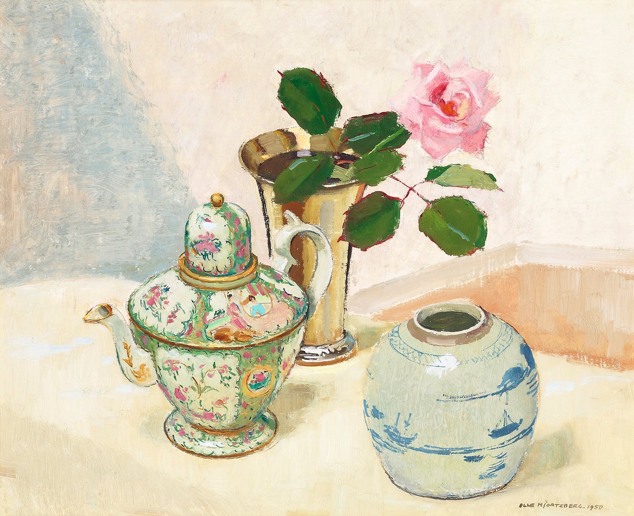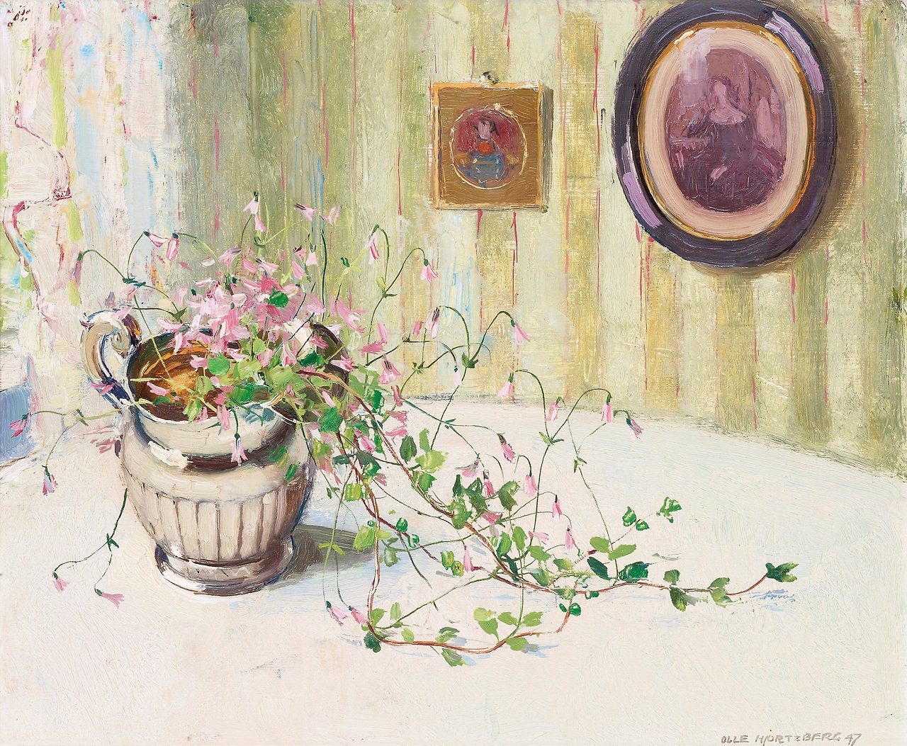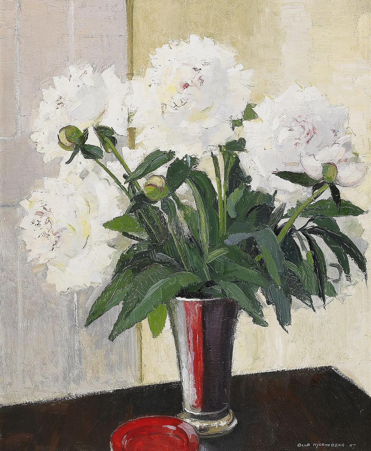 Olle Hjortzberg : Still life with roses and gypsophila, 1954