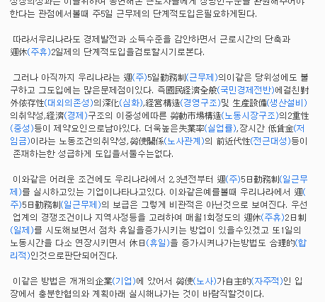 2004년부터 2011년 까지는 일반 직장과 학교가 연동해서 자율적으로 마지막 주, 격주로 실시했다. 여전히 학교에 다니고 있는 나는 학교 가는 토요일과 안 가고 '노는 토요일'로 나뉘었다. 말 그대로 노랫말 그대로 '토요일은 즐거워', '토요일은 밤이 좋아'를 온 국민이 온몸으로 경험하기 시작한 거다. 칼럼에서의 제언이 무려 30년이 넘게 걸린 거다. 그러는 사이 우리의 직장은 집안에서 최첨단 공장으로 소규모에서 세계적인 기업들이 하나둘씩 늘어나기 시작했다.