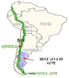 안데스 산맥 뒤에 숨어 있는 파타고니아 지방에 사막이 만들어지는 이유가 그 지역이 태평양에서 불어오는 바람이 안데스 산맥에 가로막히는 비그늘 지역이기 때문입니다.