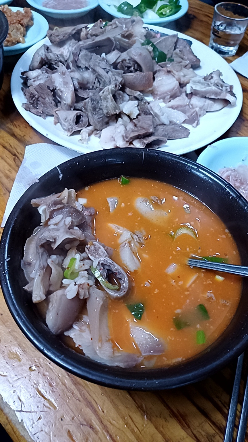 같은 목적으로 줄을 서 있는 타인에게 하소연하듯 자신의 이야기를 하고, 묵묵히 들어주는 이들이 있는 순간. 그런 선한 느낌을 요즘은 경험하기 쉽지 않다. 20여분을 추운 밖에서 기다리다 막 홀로 나갈 국밥용 돼지고기를 서너 번 토렴을 하면서 우리 일행을 올려다보면서 '다음, 들어와!'라는 퉁명스러운 이모님의 반말투에 묘하게 기분이 좋아졌다.