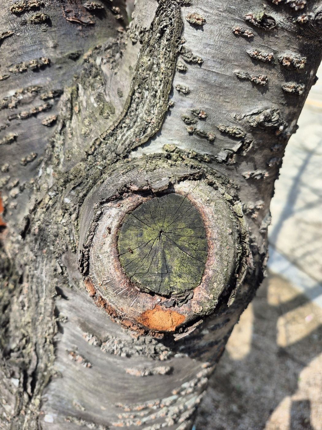 나무 가지가 잘려 나가면 스스로 그 부위가 감염되는 것을 막기 위해 진액이 나오고 그게 굳어지면서 잘린 부위를 덮어 주려고 아주 느리지만 끝까지 나오는 게 나무 새살이야.