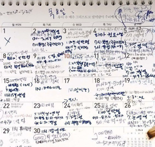 낡은 종이 달력에 제각각 필체로, 꾹꾹 눌러쓴 예약들. 월초가 아니면 그 달의 여백은 보통 찾기 힘들었다.