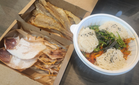그랬더니 내가 좋아하는 명태알포와 한치포, 아내가 좋아하는 골뱅이 소면을 또 배달시켜 놓았다.