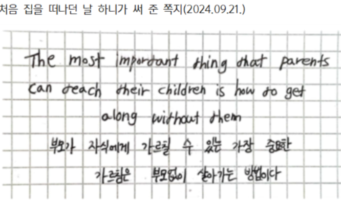 집에 도착해 더 허전한 공기를 받아 안는데, 냉장고에 붙어 있는 하니 메모가 눈에 들어왔다.