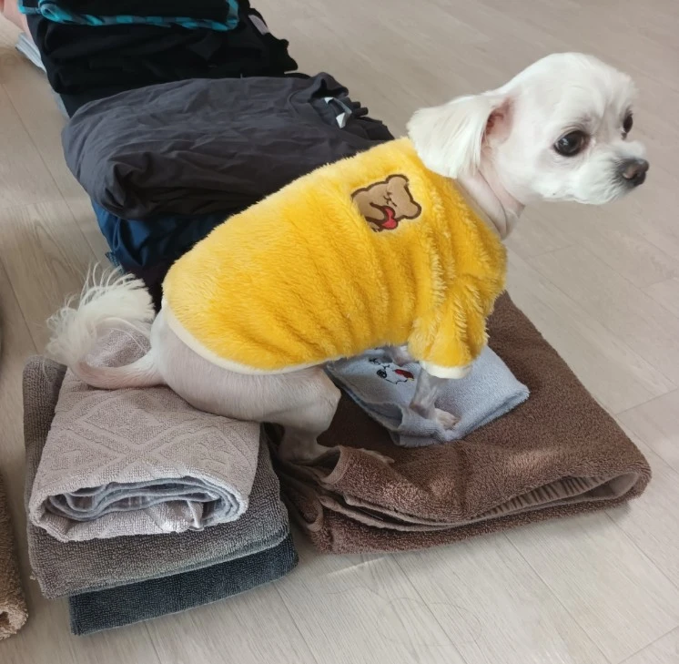 나의 새벽을 함께 하는 자그마한 심장은 특히 식구들의 옷을 좋아합니다. 식구들의 옷을 물로 다니면서 냄새를 맡습니다. 그리고 그 옷을 깔고 엎드려 있는 걸 즐깁니다. 그래서 우리 넷은 서로 자기 옷을 애용할 수 있도록 길목 길목에 일부러 방치하기도 합니다. 타닥이가 가장 좋아라 하는 순서라면서. 어릴 때 남매는 그걸로 써로 입씨름을 합니다. '아니거든. 그 냄새를 가장 좋아한다는 건, 냄새가 심하다는 거야. ㅋㅋ' 하고. 하지만, 겨울이 되면 타닥이 역시 따뜻한 옷을, 특히 '엉따'를 좋아합니다. 건조기에서 갓나온 따듯한 빨래를 좋아합니다. 빨래 개는 동안 주변을 떠나지 않고 요렇게, 요렇게 앉아서 잠깐의 좌욕을 즐깁니다.