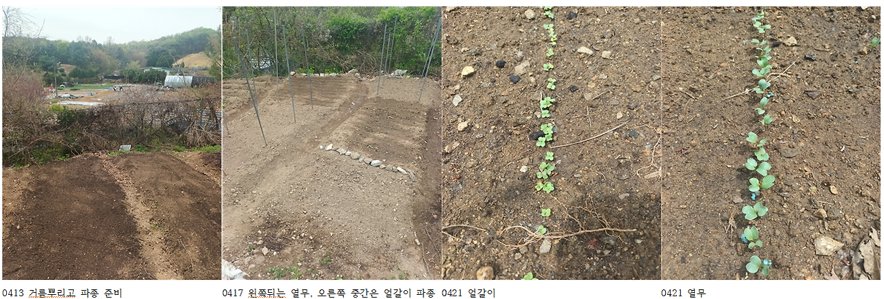 텃밭의 매력은 같은 듯하면서도 다 다른 속도대로 흘러간다는 데 있습니다. 밭이 주인을 닮아가는 모습입니다. 봄 하루는 가을 열흘이라는 속담이 있지요. 봄 하루하루를 잘 쪼개서 활용하면 풍요로운 가을이 기다리고 있다는 세상의 조언입니다. 그렇게 오늘도 자기 라이프 스타일대로 밭은 가만히 커가는 중입니다. 오늘이 지나면 4월 봄이 끝납니다. 다른 속도에 관계없이 지금보다는 좀 더 익은 5월의 텃밭이 기대됩니다.