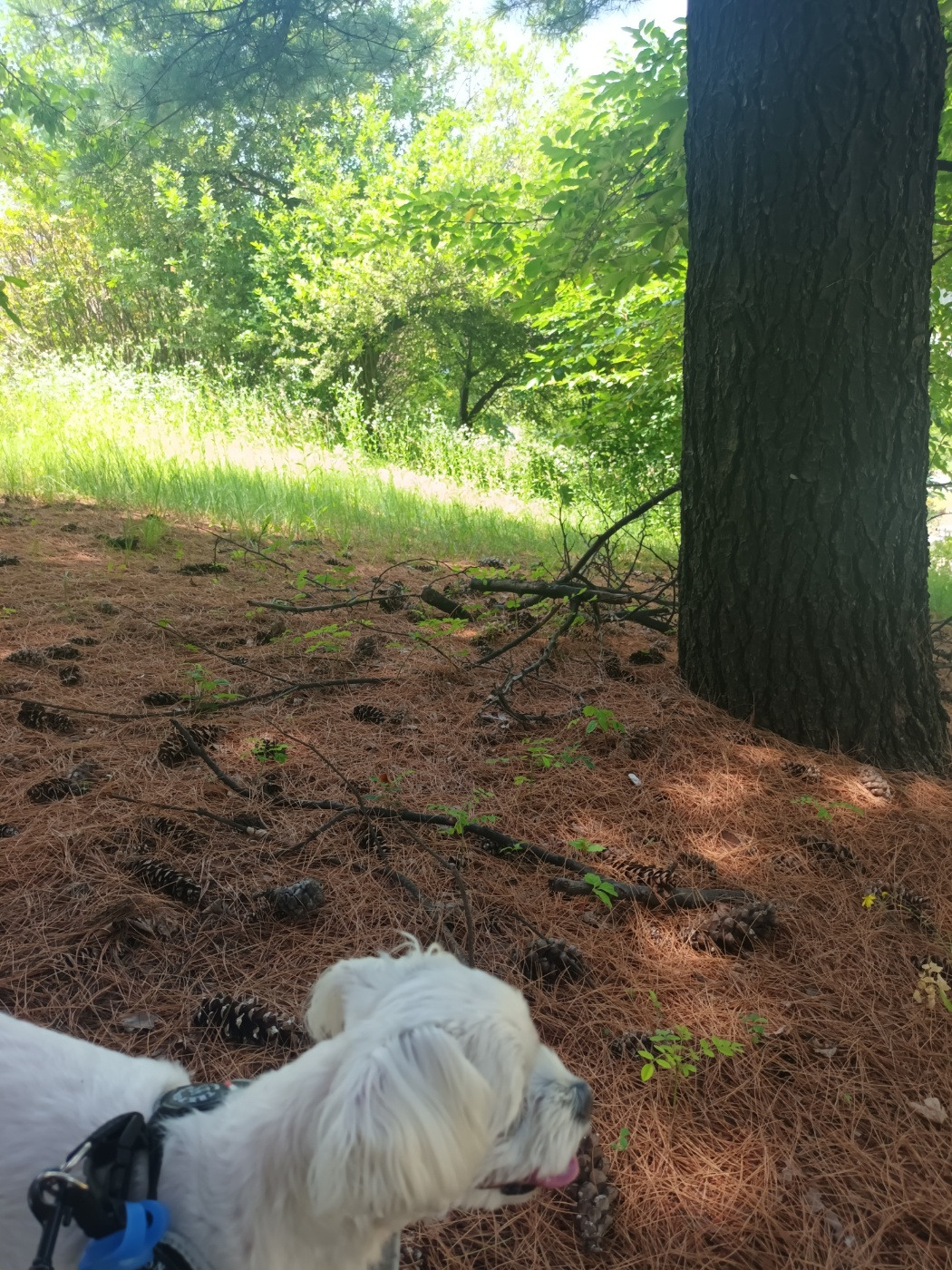 아홉 살 타닥이. 이제는 신나게 걷다가는 불쑥 산책로 옆 숲 속으로 들어가서 쉬자고 한다.