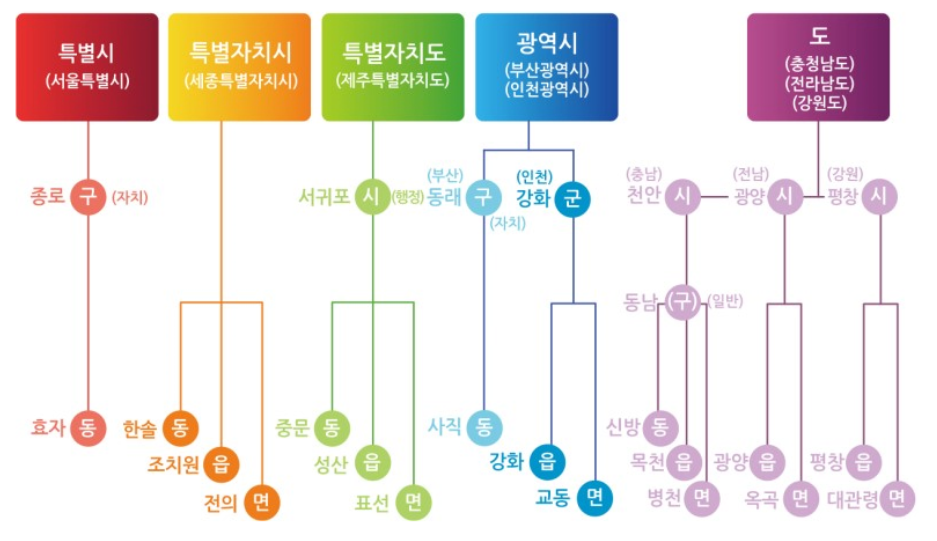 대한민국 모든 지방자치단체는 시군구로 구분하고 그 안에 실제 행정구역이 구, 동, 읍, 면, 리로 구분됩니다. 주로 도시(都市, city)는 구, 동, 읍, 촌락(村落, Village)은 읍, 면, 리입니다. 우리는 이 곳중 어느 한 곳에서 지금 살아내고 있는 거지요.