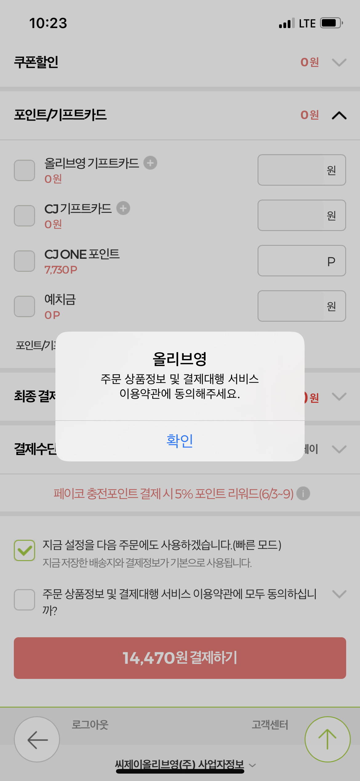 고객 편의를 위해 테스크 단계를 최소한으로 줄인다고 할지라도, 결제 진행 상황에서 이렇게 확인 버튼을 통해 다음 상황을 진행한다.