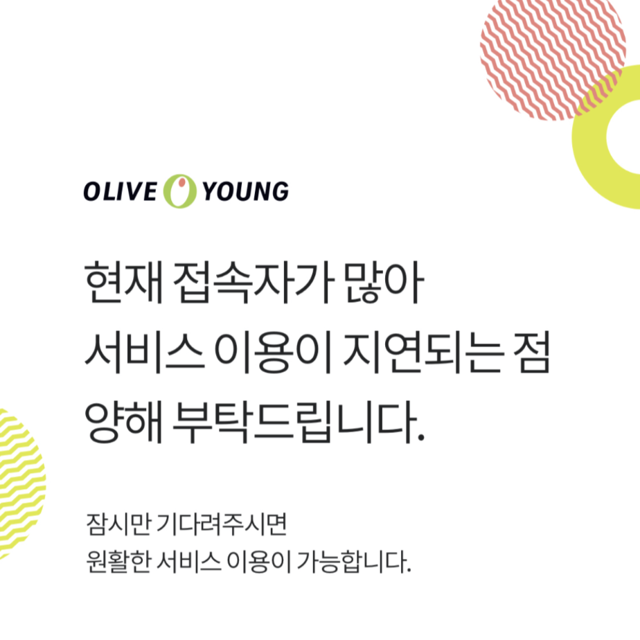 6월 3일부터 9일까지 이어지는 올영데이의 영향이었을까? 6월 6일 주말 간 올리브영 App에 대기인원 2천 명 상당의 트래픽이 몰렸다. 이런 상황을 대학교 수강신청이나 유명 연예인의 콘서트 무대 티켓팅 할 때 경험하곤 하는데 그때마다 우리가 마주하는 지금의 이런 화면이 도허티 임계라는 심리학의 법칙을 이용하여 고객 이탈을 최소화 하기 위한 디자인 기법이다.