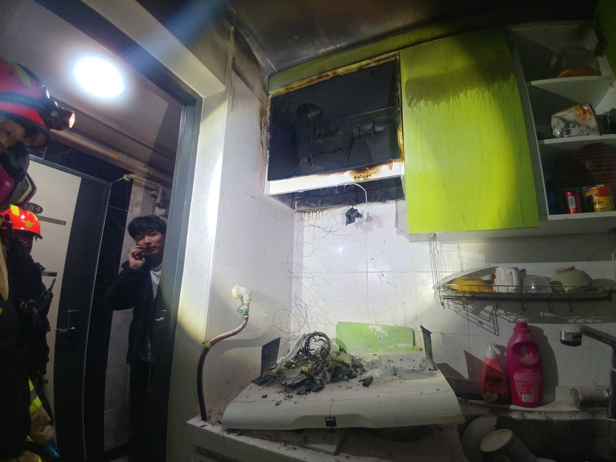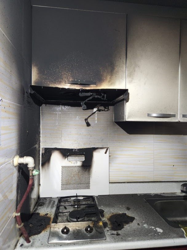 두번째 사진은 잠을 자던 중 주방 후드에서 화재가 발생한 사례이다.