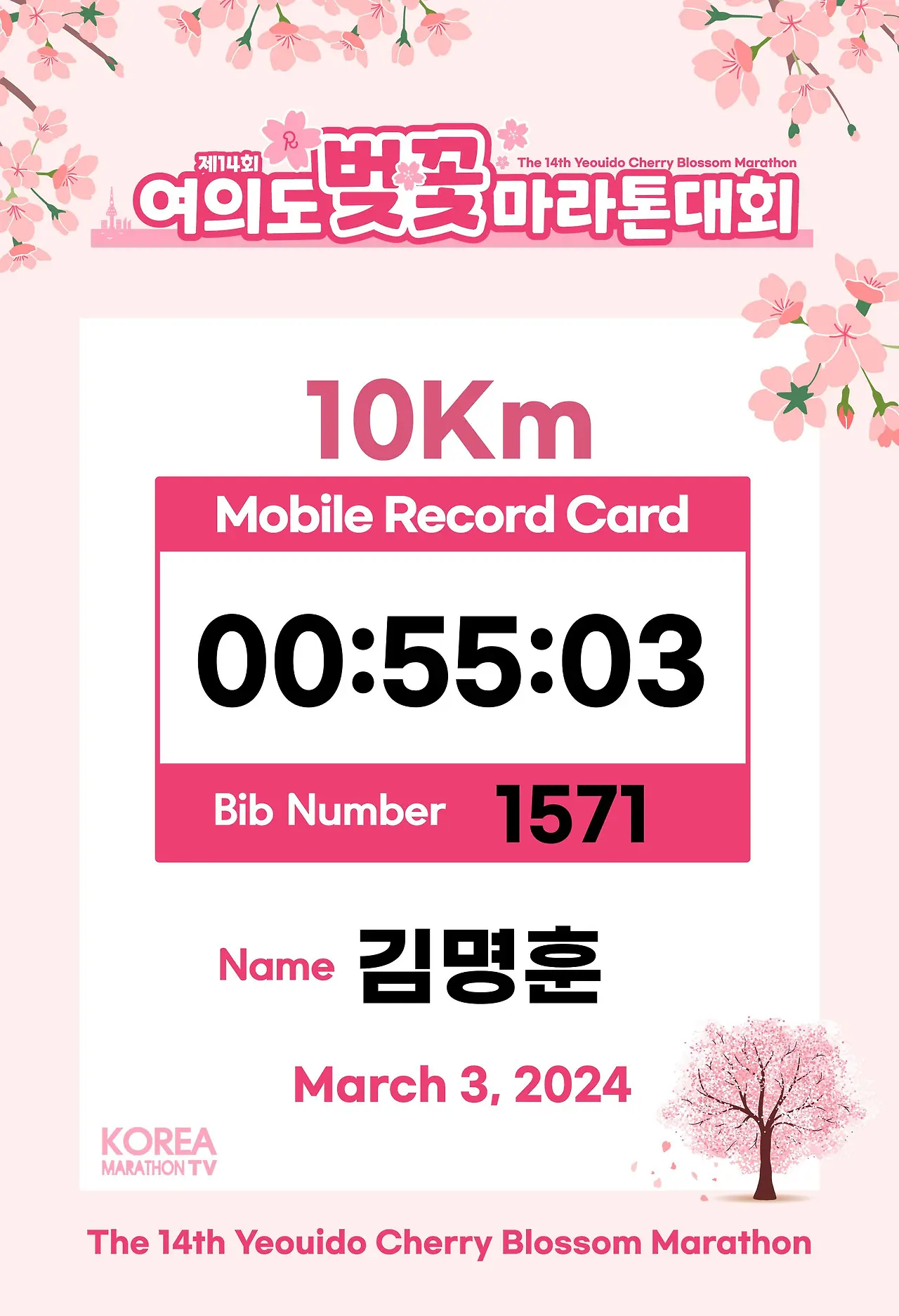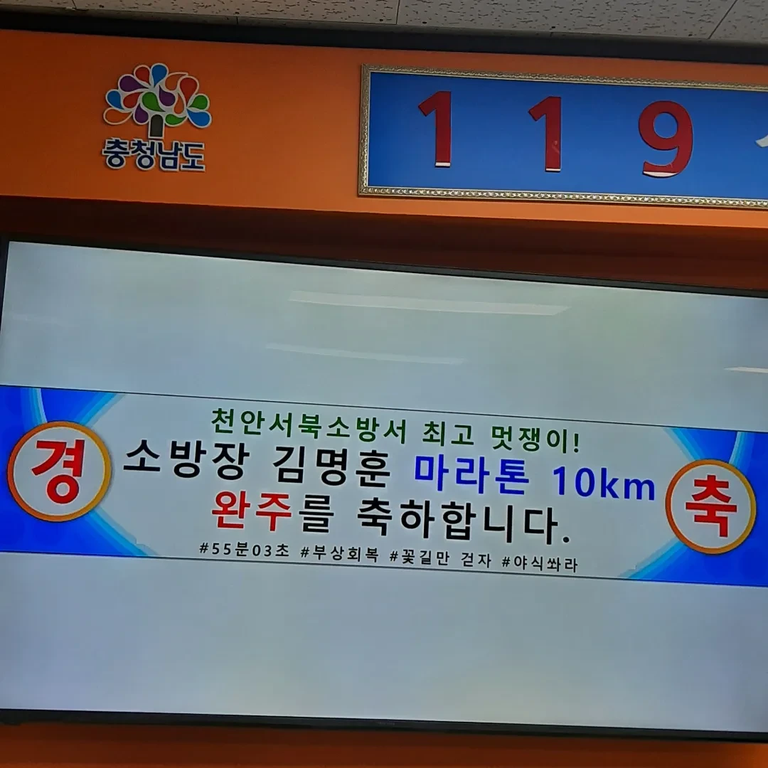 "소방장 김명훈 마라톤 10km 완주를 축하합니다."
