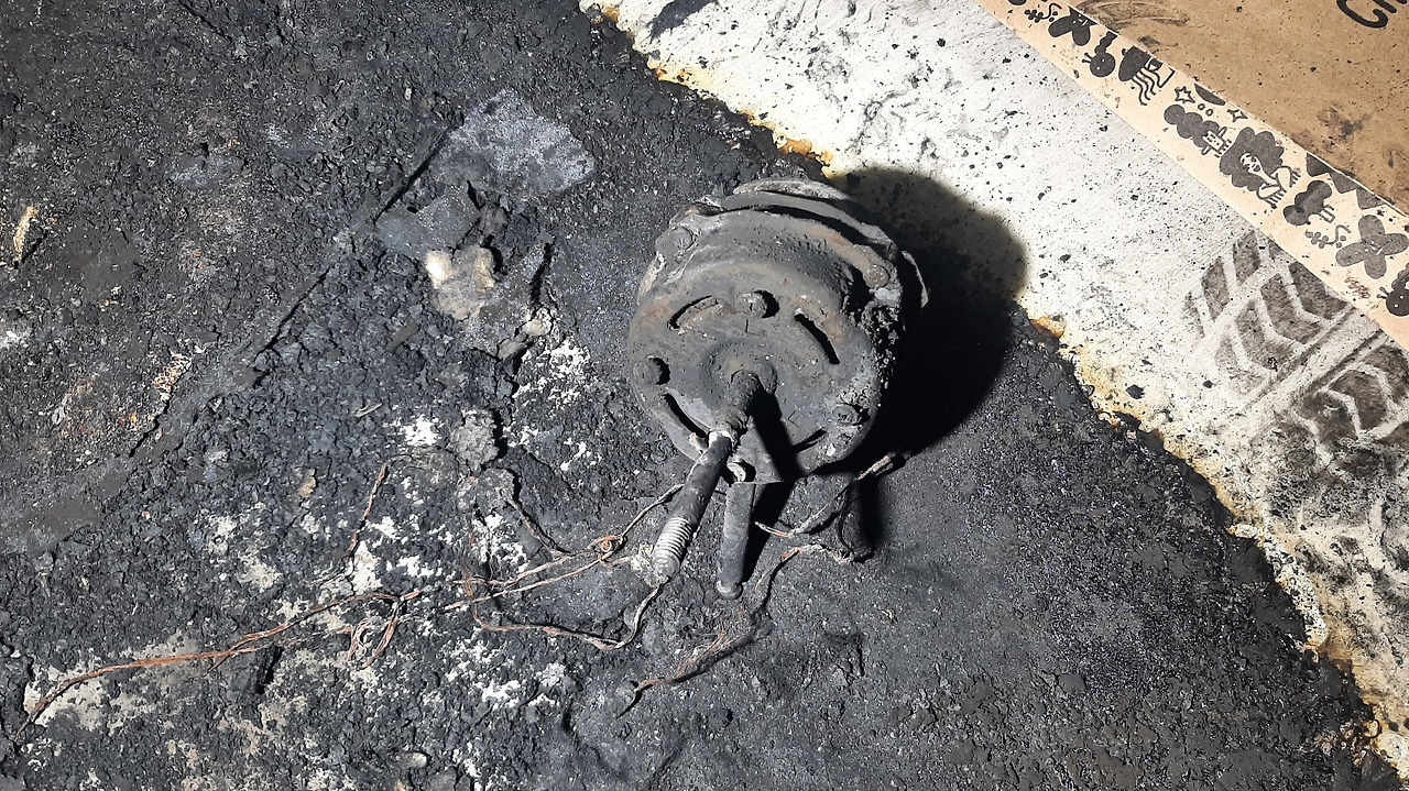 선풍기 몸체는 화재로 인해 대부분 녹아 있었고