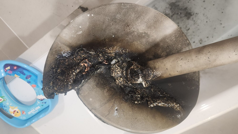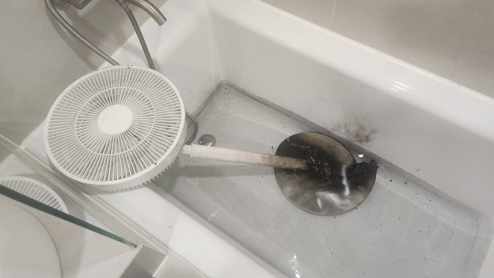 선풍기를 욕조 물에 담가 놓은 상태였다.