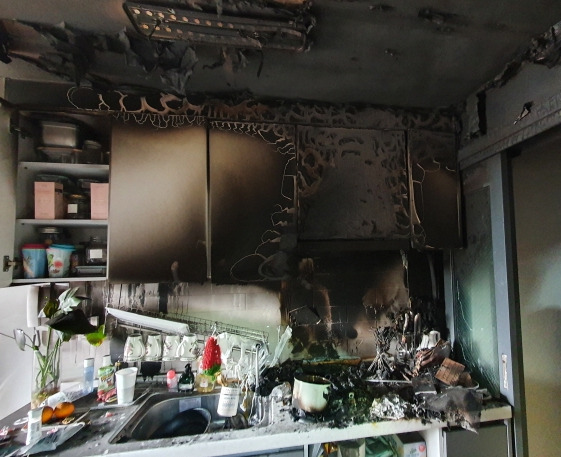 화재 현장에 도착했을 때 싱크대 일부가 시커멓게 그을려 있었고 스프링클러가 작동하면서 다행히 불은 더 이상 번지지 않은 상태였다. 오피스텔 내부에는 사람이 없었고 고양이 두 마리와 강아지 한 마리만 있었다. 화재의 원인을 조사해 보니 전기레인지 위에 있던 가연물에서 불이 시작된 것으로 추정되었다. 전기레인지가 작동하면서 위에 올려져 있던 물건에 불이 붙었고, 그대로 화재로 이어진 것이었다.