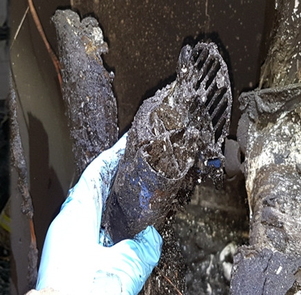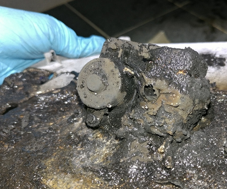콘센트에 꽂힌 전선을 따라 바닥에 쌓인 탄화물을 하나하나 제거하던 중, 불에 탄 헤어드라이기 잔해가 발견되었다. 건물 관계자의 말에 따르면 해당 헤어드라이기는 항상 전원 코드를 꽂아둔 채 화장실 선반 위에 올려두고 사용해왔다고 한다. 아마도 헤어드라이기가 선반에서 떨어지며 충격으로 작동되었고, 이로 인해 과열되어 화재가 발생한 것으로 추정되었다.