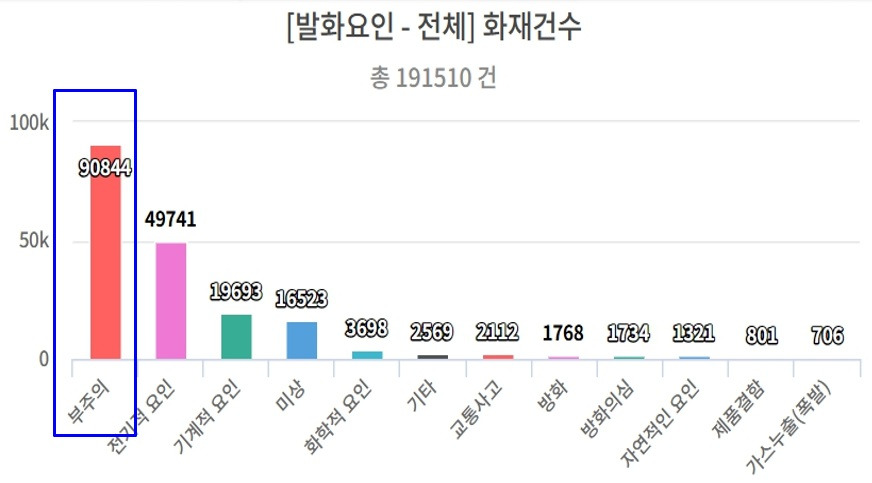 최근 5년 동안 우리나라에서 발생한 화재는 191,510건에 달한다. 그중 절반에 가까운 47%, 90,844건이 ‘부주의’로 인해 발생했다. 그저 순간의 방심이 만들어낸 결과치곤, 너무나 크고 무거운 숫자다.