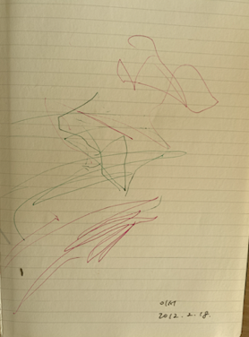 두 살짜리 아이가 두 가지 색으로 선을 그어놓은 것을 기뻐하며 날짜를 써뒀었다.