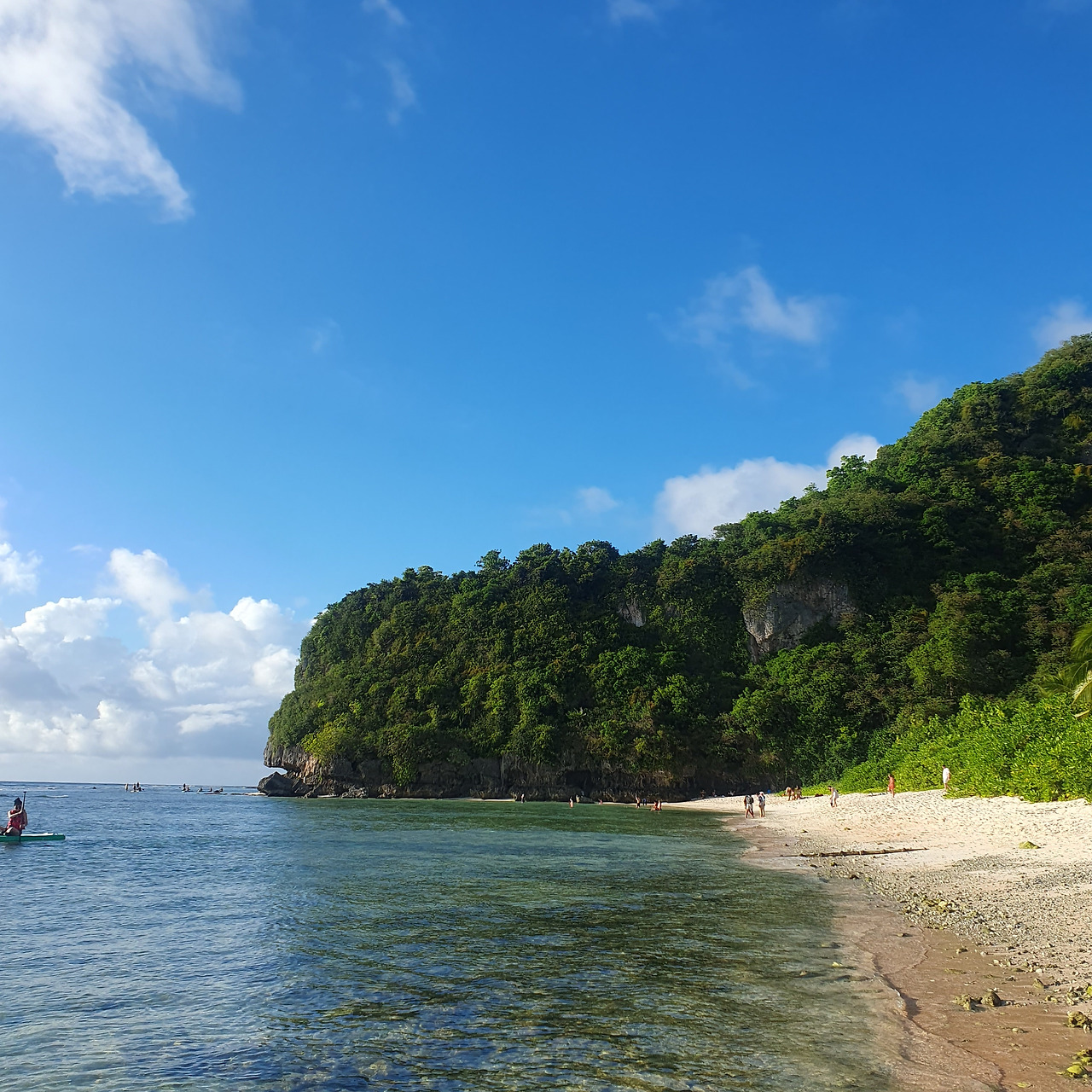 투몬비치와는 다르게 건비치는 자갈로 덮여 있었고 돌 사이사이에 이끼가 끼여있었다. 같은 땅의 바다가 이토록 다를 수 있다는 것을 알게 해 준 '건 비치'. 저 멀리 보이는 이들은 대부분 커다란 노를 저어가며 패들보트를 타거나 커다란 산소통을 메고 바다로 들어가는 다이빙을 즐겼는데 아무래도 이곳은 수상 액티비티를 즐기기 딱 좋은 바다인 것 같다.