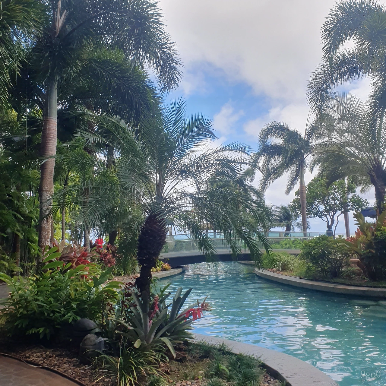 한 번씩 불어오는 강한 바람에 이리저리 휘날리는 야자수들이 무성하게 우거진 수영장의 물은 온도는 어찌나 차가운지, 발바닥에 닿은 찰랑거림의 짜릿함이 심장을 지나 머리끝까지 빠르게 퍼져나갔다. 뇌 속까지 얼얼한 차가움에 놀라 우리는 투몬비치로 발걸음을 옮겼다.