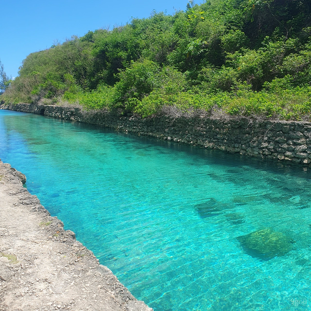 사진처럼 투명한 물 색깔을 지닌 에메랄드 밸리는 여태 괌에서 보아온 바닷물과는 또 다른 색깔을 띠고 있었다. 그렇게 많은 바다를 봤음에도 이런 색은 처음이었다. 누군가가 아이에게 물고기를 보여주겠다고 빵조각을 톡 던졌더니 순식간에 수많은 물고기들이 물가로 몰려들었는데 그 옆으로 유유히 헤엄쳐가는 물뱀처럼 보이는 파랗고 가느다란 생명체를 보고 있자니 그저 신기했다. 물고기가 이렇게 많이 살고 물이 이 정도로 맑은 것을 보니 아무래도 공장이 자연에 큰 해는 끼치지 않는가 보구나 하는 안심이 살짝 들었다.