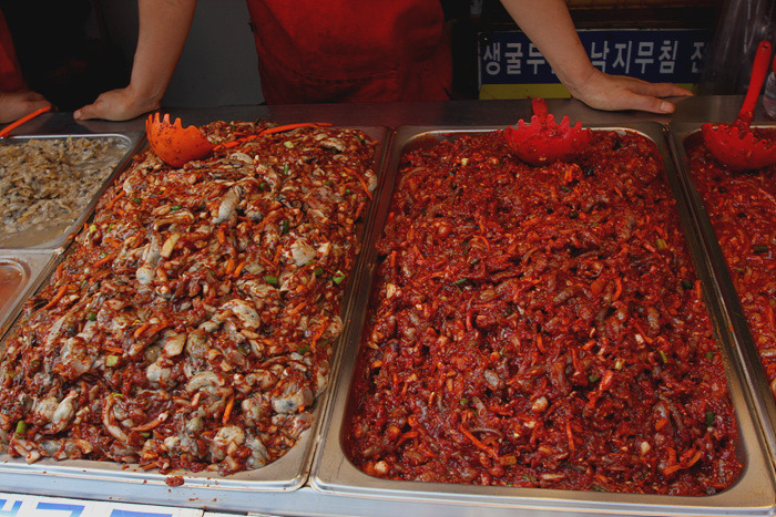펄덕거리는 생선들 왁자지껄한 횟집에 가지가지 젓갈이니 푸짐한 말린 생선이 가득하지요