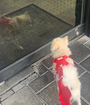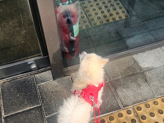 딱 한 번, 그것도 비가 많이 오던 날 품에 안겨 왔던 곳이었는데. 그걸 기억하는구나 싶어 기특하고 신기한 마음이 드는 것도 잠시, 집에는 강아지를 위해 주문해 둔 수제 간식들이 냉동실 한켠을 채우고 있었고, 병이 심해지며 심장만큼 신장도 조심해야 하는지라 고단백 식품인 간은 되도록 주고 싶지 않은 마음에 그만 가자 하네스 끈을 당겼다. 하지만 고집 센 내 강아지는 분식집 유리문 앞에 얼굴을 바짝 붙이고 서서 한 발자국도 움직이지 않았고, 배달 콜을 받은 오토바이가 분식집 근처에 잠시 멈춰 서면 용맹하게 왈왈 꾸짖고는 다시 문틈 사이로 코를 박으며 순대를 향한 자신의 요구를 열성적으로 표현했다.